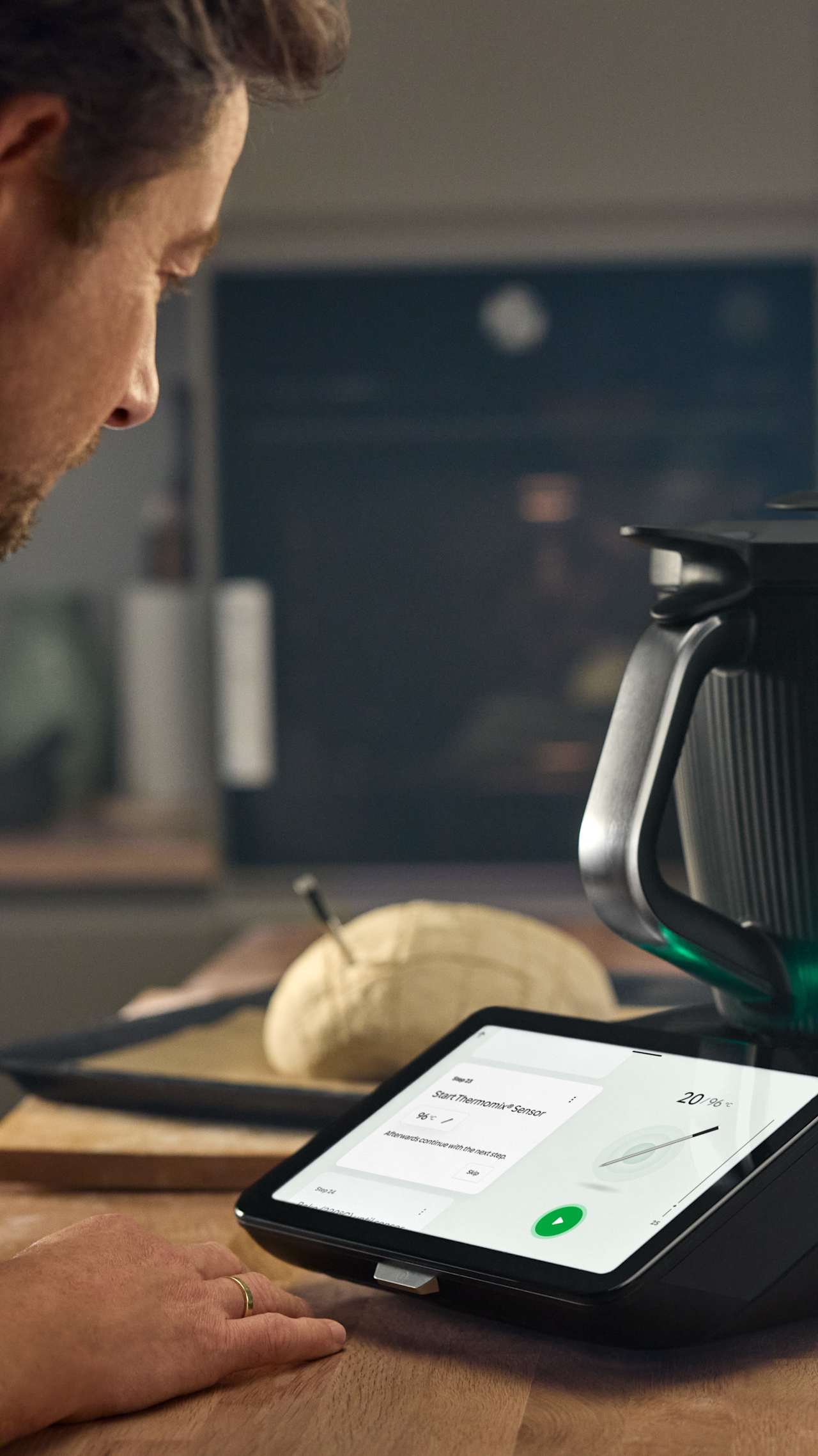 Have you ever dreamed of having the power of precise heat control in your kitchen? Imagine a single touch and everything turns out perfectly – from flawlessly cooked meat and succulent fish to beautifully baked cakes and bread. No more worrying about undercooked meat or burnt cakes. Now, you can make that dream a reality with the new Thermomix® Sensor. Our Thermomix® recipe success guarantee goes beyond the bowl to your entire kitchen! With the help of this wireless food thermometer, you can effortlessly monitor your cooking through the Thermomix® and Cooking Centre app.
