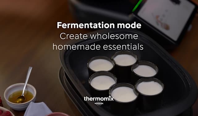 Yeast converts glucose (sugar) into CO₂ and ethanol, allowing bread to rise and develop flavour. Yeast is most active at 32-35°C. Place dough inside a greased, covered Varoma dish, place 250 g water in mixing bowl and use Fermentation mode at 70°C. This provides a warm, humid, and controlled environment (approx. 30°C) in the Varoma dish for a consistent rise.
