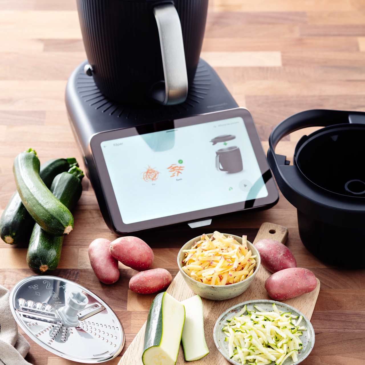 With Thermomix® Cutter+, you can perfectly slice, grate and spiralize cucumber, potatoes, and other fruits and vegetables, for stunning salads, oven-baked dishes, and tons of your other favourite recipes. Effortless cutting with exceptional results.
