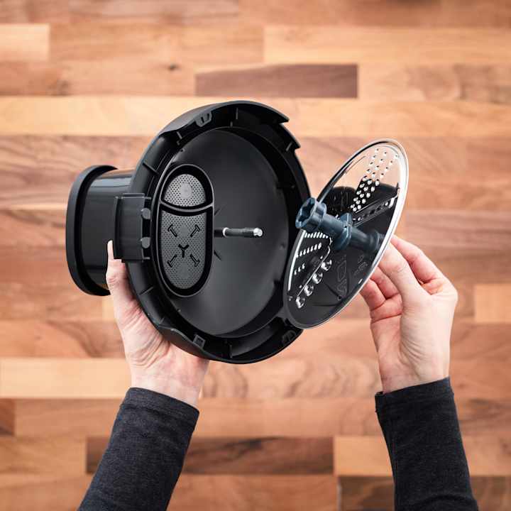 • Ensure the cutter disc is inserted with side 2 facing up. The light central hub needs to be facing upwards for grating.