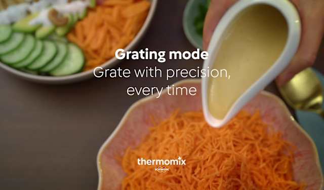 Using Thermomix® Cutter+, effortlessly grate fruit and vegetables with the Grating mode. Perfect for thinly grating potatoes to create delicious röstis, or thickly grating cheese for homemade pizzas.