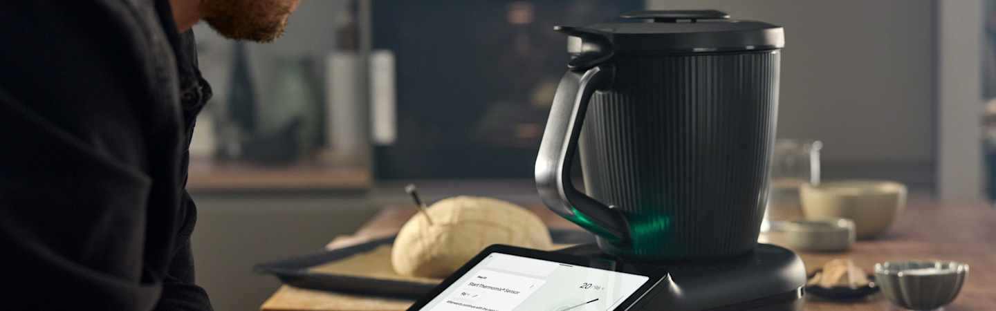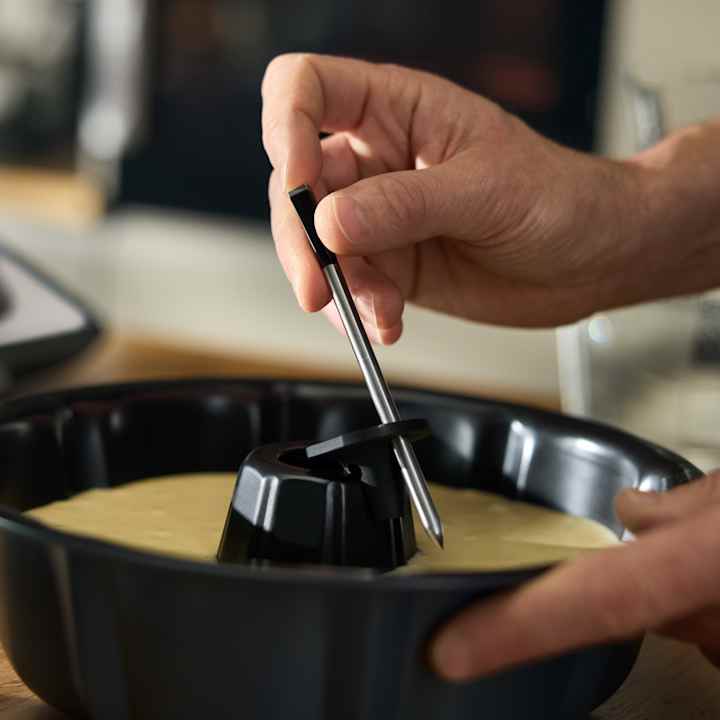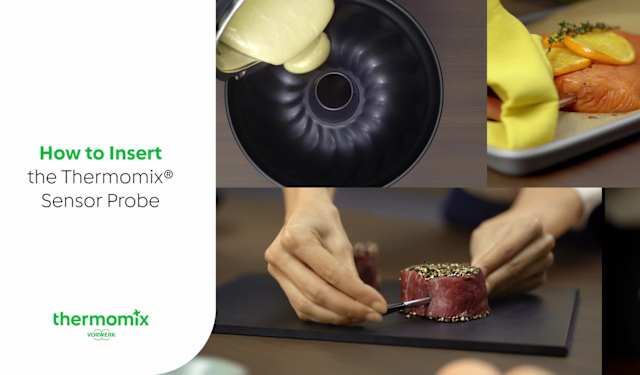 Achieve culinary perfection with Thermomix® Sensor and Sensor mode, a Bluetooth® kitchen thermometer that can be used in your oven, pan or barbecue. Cook with confidence as it measures both internal and ambient temperature, ensuring ideal cooking conditions for cakes, bread, meat and fish.