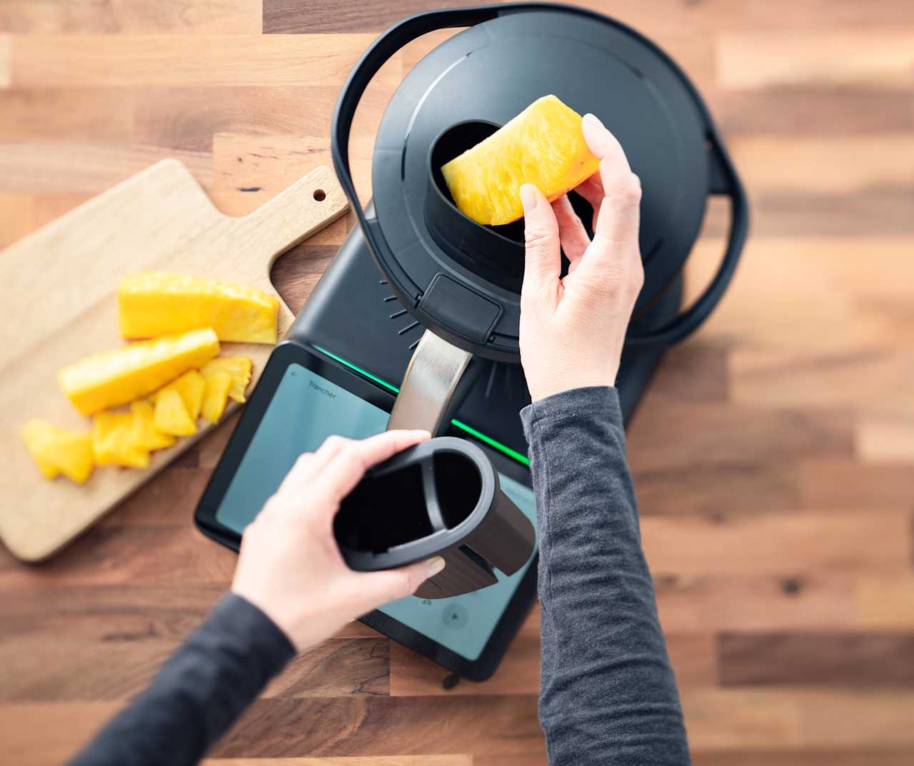 Using Thermomix® Cutter+, you can effortlessly slice fruit and vegetables with Slicing mode.