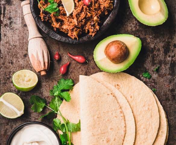 Tex-Mex Tortillas with Shredded Pork and Black Beans