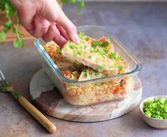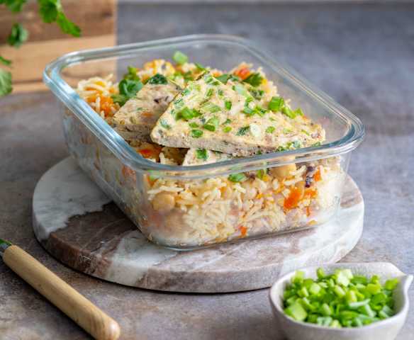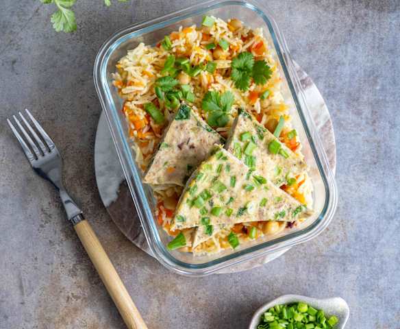 Frittata z kurczakiem z rosołu i warzywnym ryżem