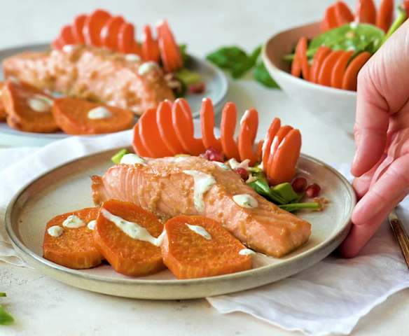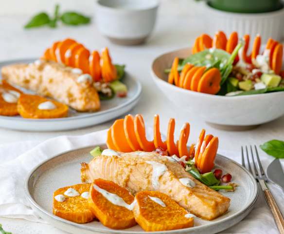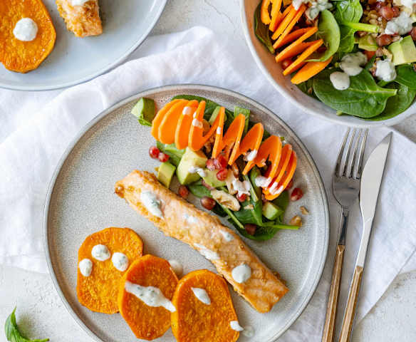 Pieczony łosoś z batatami i sałatką dla pięknej cery (TM7, TM6, TM5)